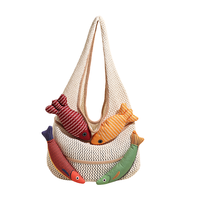 Niedliche kleine Fisch-Stricktasche aus Wolle mit Polyesterfutter, tragbare Schultertasche, Herbstneuheit 2025